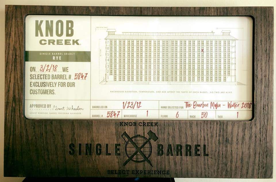 When selecting a Knob Creek bourbon or rye, you will go to a Bourbon rackhouse to select 1 of 3 barrels to have bottled. Once your group has selected a barrel, it will be bottled at 120proof. Ages can range from 9yrs to 15yrs. Rye selections are proofed at 115, and aged at 6yrs.