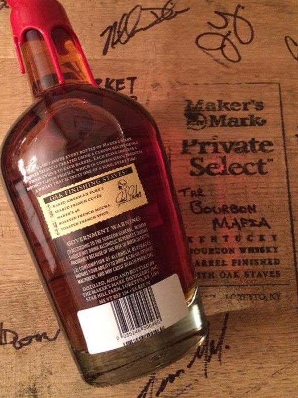 Beginning as fully matured Maker's Mark® at cask strength, Private Selection is created by adding 10 custom wood finishing staves to each barrel. Participants in this special barrel program get their say in the selection of these wooden staves. With 1,001 possible stave combinations, each expression of Private Selection has a customized finish and taste profile that is unique, yet undeniably Maker's®.